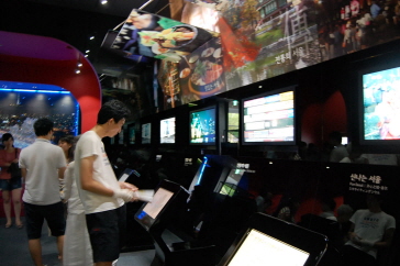 スクリーンではタッチパネルを通して観光名所や美術館、博物館、劇場などの情報もモニターで見ることができ、ソウル観光に役立つ情報が満載。さらに、ソウルの未来都市設計、デザインなどの展示もある。またドラマや映画など「韓流」に関する情報もあり、有名な作品別にロケ