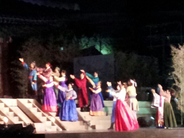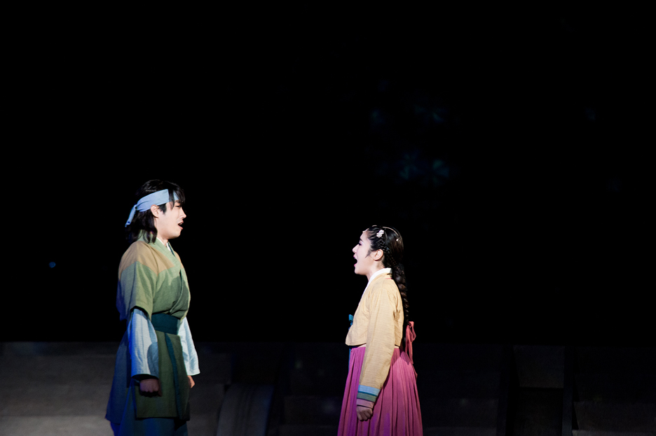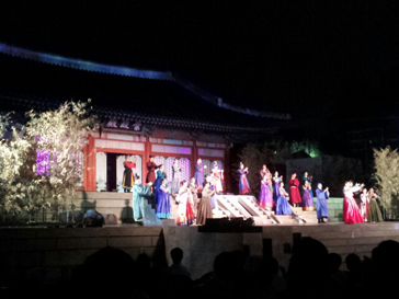 世宗大王が登場し優秀な人材を探すように命令を下す場面。スタートからの世宗大王の歌声だけでもその威厳がそのまま伝わってきたのに、それに負けない大合唱にはとても圧倒されました。主人公であるチャン・ヨンシルとヨンシルの愛する人イェソンは誰が見ても両思いの2人。そんなとき、ヨンシルが宮中に入ることになり、愛するイェソンと別れのシーンでは、2人の切ない歌声が会場に響き渡りました。歌詞の内容がとても切なく、そんな歌を歌いながら2人が手を伸ばし見つめるその先には輝く1つの星。実際に星なんてないのについつい目で追ってしまうほど、このときにはすでにミュージカルにのめり込んでしまっていました。