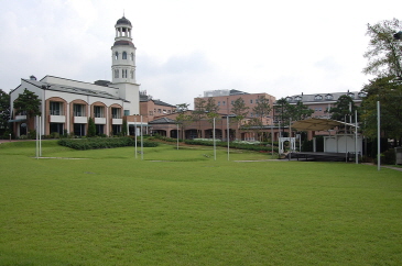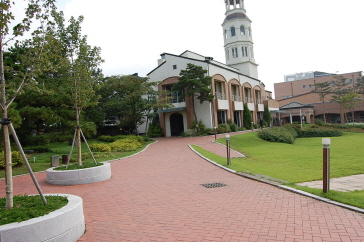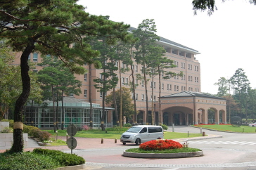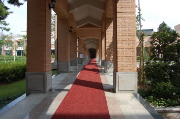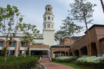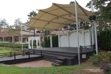 広い敷地に一面に芝生が敷き詰められたベルタワーガーデンは、自然の美しさをそのまま感じながら結婚式ができる会場で、「コーヒープリンス1号店」でチェ・ハンソンとハン・ユジュの結婚式のシーンや、「あなた笑って」でカン・ヒョンスとソ・ジョンインの結婚式のシーン、今年の夏に日本でも放送された「お嬢様をお願い」でカン・ヘナが会社の重役たちの前でスピーチをするシーンなどが撮影されています。綺麗な緑色の芝生の中心の、ステージまでまっすぐ続くバージンロードはとても綺麗でここで結婚式を挙げたいなぁと感じてしまうほどでした。今回は何も行われていなくて、結婚式の会場とは少し雰囲気が違うなぁと感じましたが、実際に結婚式がある日は真っ白なテーブルがならび、ドラマの中とそっくりな雰囲気になるそうです。ベルタワーガーデンの裏側にある階段の前ではチェ・ハンギョルがコ・ウチャンに指輪をはめるシーンが撮影されました(コーヒープリンス1号店)。