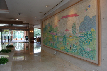 ロビーに入ると左側に大きな絵が飾られていました。よくよく見てみるとそれは「メイフィールド」をかわいいタッチで描いて作品でした。この絵はロマンスタウンでカン・ゴヌのおじいさんの作品として扱われ、ノ・スングムと一緒にこの作品を見に訪れるシーンで使われました。ロビーでは他にも「愛情万々歳」「お嬢様をお願い」「シンデレラのお姉さん」「49日」など、細かいシーンの撮影で多く使われています。ドラマをよくよく見てみると、そのドラマごとにロビーに置いてある物が少しずつ変えられドラマごとに雰囲気が違って、本当に同じ場所で撮影したのかと不思議になるくらいでした。