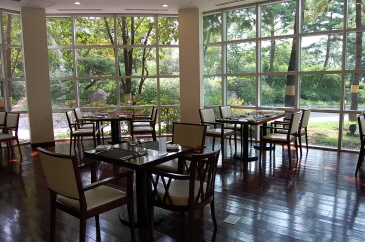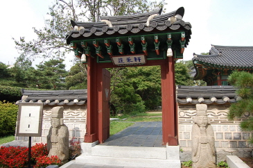 「楽園」の横にある「蓮莱軒」ではランチのスペシャルメニューで韓国伝統の韓屋で宮中韓定食を食べることができ、韓国固有の味と雰囲気を味わうことのできるレストランです。「蓮莱軒」の門をくぐった瞬間、韓国独特の色彩で覆われた韓屋が目にとまります。ヨーロッパ風のホテルがすぐ横にあるのに、まるで違う遠い場所に来たかのような気分になりました。芝生と木でぎっしりの庭の真ん中には池があり、韓国式でありながらもどこか和風を感じさせる、日本人にとってはとてもおちつく部屋の中から眺める、芝生と木でぎっしりの庭に心と体も癒されるようです。庭の真ん中には池があり、そんなお庭を見ながらのお食事はこんな贅沢はないといったような感じです。