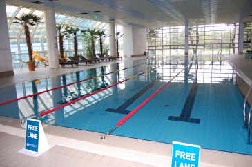 メイフィールドスイートには大小合わせた3つのプールが備えられており、25m4ラインのプールのほかに子供専用のプールもあります。プールの入口には、以前はスキューバーダイビングの体験ができた空間を利用し、子供が遊べる遊戯室に改装されています。ここのプールの水には海水が含まれていて舐めるとしょっぱいんだとプールの監視をしていたおじさんが教えてくれました!ジムは広々とした空間にたくさんの機械が備えられていて、窓側ではゴルフ場のコースを見ながら運動を楽しめるようになています。ホテル利用者はプールもジムも無料で使用できるそうです。