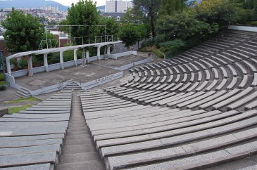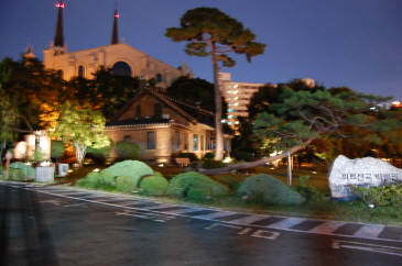大邱でのメインはやっぱりここです!同じ啓明大学の城西キャンパスとは少し雰囲気が違い、異国的で少し時代を感じるようなつくりの建物が多い大明キャンパス。正門をくぐると正面にはドラマにも出てきた本館があります。ドラマの中では生徒全員が愛国歌が流れる中、胸に手をあて国旗がおりて行くのを見ているシーンです。イナ・チャンモ・ドンウクの3人組が大学歌謡祭に出たときのステージは人がいないと寂しいくらいの広さです。