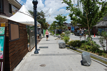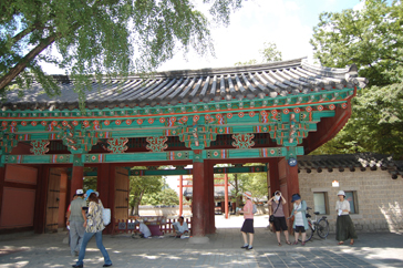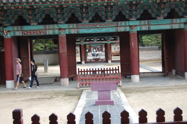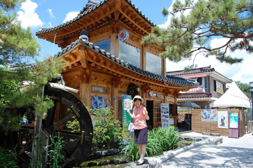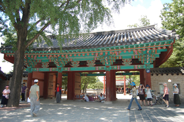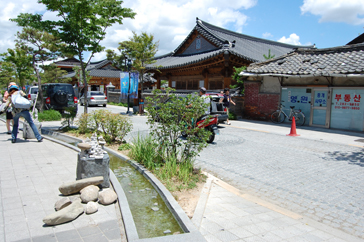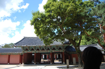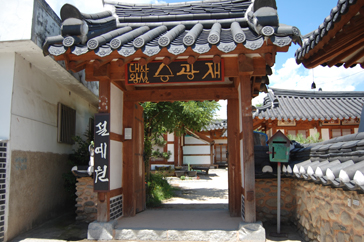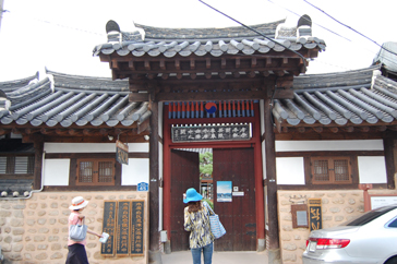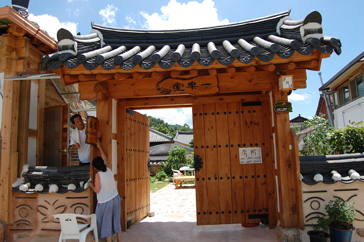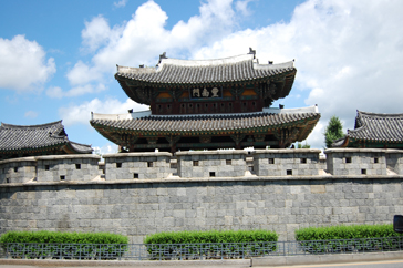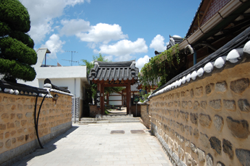 まずは案内所で日本語の地図をもらい、ハングルで「全州韓屋村」と書かれた大きな石のモニュメントの前で記念撮影。韓屋村に入ると大きな扉に「立春大吉」と書かれた紙が貼られているのをよく見かけました。土壁の風合いが素朴で、少しソウル北村韓屋村の雰囲気に似ているようでした。メイン通りへ行くまでに所々休憩場所があり、道の脇には小川が流れていてとても涼しげでした。メイン通りは思ったより都会で仁寺洞を少し大きくした感じにも思えました。道は迷路のようで何度も同じ道を通ってしまいました。何度も同じ道を通りながらゆっくり見学ができたおかげで、昔ながらの佇まいを残している韓屋と、現代の建物がその風情を生かし.ながら街が造られていることが実感できました。お昼前に到着した私たちは、さっそくビビンバを食べに行くことにしました。ビビンバ発祥の地だけあっていろんなところにビビンバのお店がありました。友達と2人でユッケビビンバと石焼ビビンバを注文したんですが、食材の味を生かしたビビンバで、今まで食べたことのないような味に感動しました。お腹を満たし、メイン通りから見ても目立っていた「慶基殿(キョンギジョン)」へ
