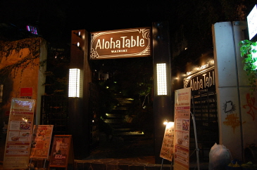 そんな弘大の夜を体験するため、金曜の夜に弘大に行ってきました!弘大の街を歩いていると、おしゃれなお店がいくつも見受けられました。お店がひしめき合う弘大ですが、それぞれ個性があり、1つ1つのインテリアにこだわりのあるお店が多かったです。日本でいうと東京の原宿に似ているそうです。ドラマ「シークレットガーデン」にも登場したイタリアンレストラン「The Gabriel(ガブリエル)」や、コーヒープリンス1号店にも登場したカフェなど、ドラマの撮影されたお店も多くありました。1歩裏通りに入るとアートな雰囲気があふれ、ソウルにいることを忘れてしまいそうな隠れ屋的なレストランやバー,焼き菓子屋などもありました。1軒屋を利用したカフェなど、大きいお店だけでなく小さいお店も、どれも個性があり、1つ1つ見て回れば1日中飽きずに弘大の街を散策することができると思いました。今度、時間があるときにゆっくり散策をしてみたいです。この日は、金曜の夜ということで若者がとても多く、日本とは違った服の色使いをするおしゃれで個性的な彼らを見ながら散策するのも楽しかったです。道路には食べ物だけでなく、アーティストの手づくりによる手工芸品や絵画、中古品、オリジナル製品などの屋台が並んでいました。買い物をするというよりは、おもしろいマーケットを見学するといった感じでした。そんなお店が多くある中、一際目を引くハワイアンレストラン「Aloha Table」で夕食をとることにしました!