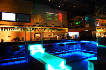 最後にできたビッグベイビーは大きな画面とレーザービームなどで店内を盛り上げ、天上には店内を走るイスなどが設置されていて、他の2つとはかけ離れたイメージでした。でも、ちゃんとバーの雰囲気は残されており、お酒をゆっくり飲みながら楽しみたいという人のために、それ専用のスペースが設けられているなど、クラブに慣れてない人でも楽しめるようになっていました。