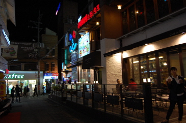 芸術系大学である「弘益(ホンイッ)大学」を中心としたエリアで、ソウルの学生街の中でも1番アートで自由な雰囲気が漂い、流行の発信地でもある街です。壁などに絵が描かれていたり、おしゃれなレストランやカフェが多く、路上ライブも毎日見かける事ができます。独特なファッションの若者たちが集まるおしゃれエリアで、クラブなどの夜遊びスポットとしても有名です。週末ともなるとクラブ目当ての人でごったがえし、若者たちは朝方まで踊り続けます。