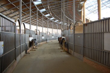 モダンな外装の馬車乗り場の施設には、赤松の原木で作られた110の馬部屋、行き届いた訓練を受けたドイツ産血統馬が徹底した管理の下、最高のコンディションで待機している。乗馬の後はシャワーできるようにシャワーブースを用意し、お客様が最後まで快適に過ごせるように常に心懸けています。