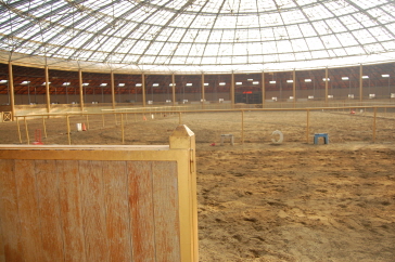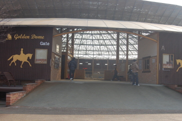 ベルアデル(BerAdel)とはドイツ語で「乗馬する貴族」を意味する言葉で、「馬に乗って領地を視察する・開拓者・パイオニア」という意味の‘Bereiten’と、「貴族、高尚な」という意味の‘Adel’を組み合わせた合成語です。場内の施設はその名にふさわしく、黄金色に輝くゴールデンドーム室内馬場、室外の芝馬場、外乗コース、馬車が用意されている。その中でも紫外線カットの特殊UVガラス張りで超大型、ドームの形をしたゴールデンドーム室内馬場はベルアデル自慢の施設です。
