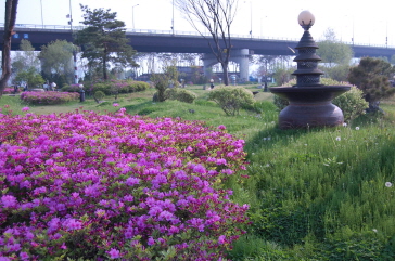北漢江と南漢江の二つの水が合わさる所、二水頭(トゥムルモリ)がすぐそこに流れこれを目当てに洗美苑に入る人も多いです。