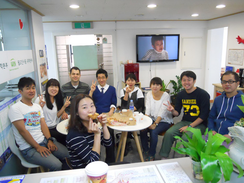 江南で働く社会人や留学生、日本や中国、ヨーロッパなどから生徒さんが集まってきており、生徒同士の交流会も盛んです。また日本語を学ぶ韓国人の日本の有名大学への留学を支援する活動も行っています。上の写真は支援した留学生の入学式の写真です。